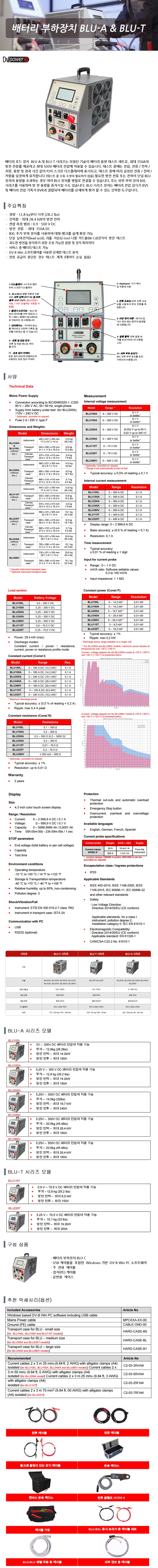 5.25 - 500V DC전압, 방전 전류 160A DC, 방전 전력 최대 28.4 kW 배터리 부하 시험장치 BLU-A Series