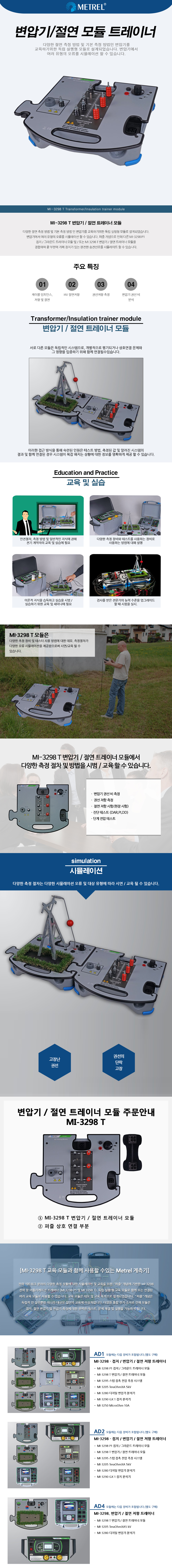 변압기 권선 비, 권선 저항, 절연 저항 시험측정. 진단테스트(DAR,PI,DD),단계전압 테스트 변압기/절연 모듈 트레이너 MI-3298 T