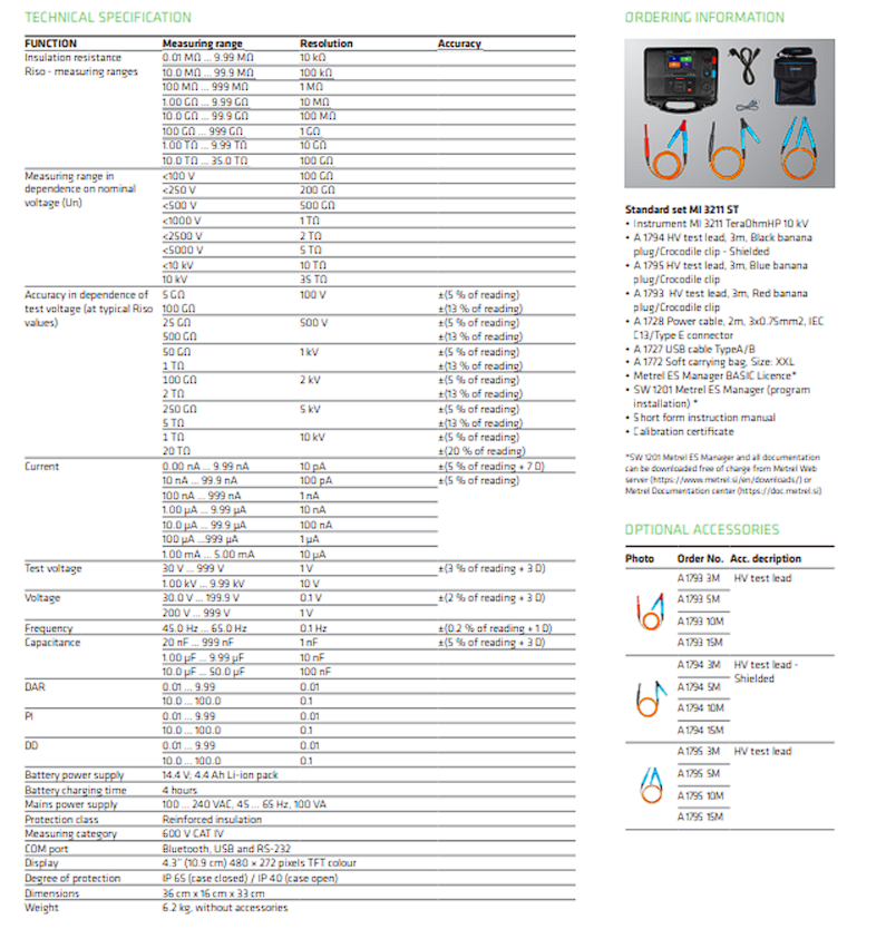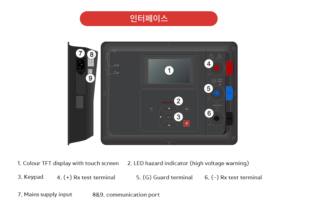 최대 20TΩ측정, 50~10KV시험전압, 그래픽분석기능, PI,DAR,DD측정, 컬러터치디스플레이 MI-3211 TeraOhmHP 10 kV