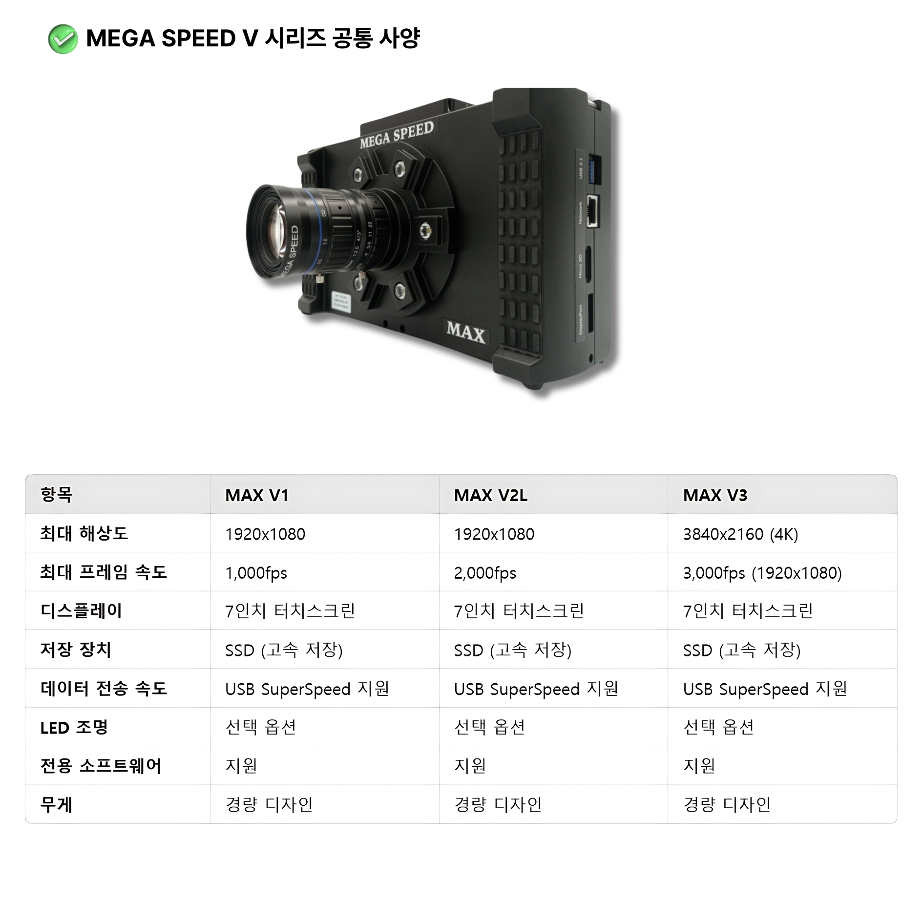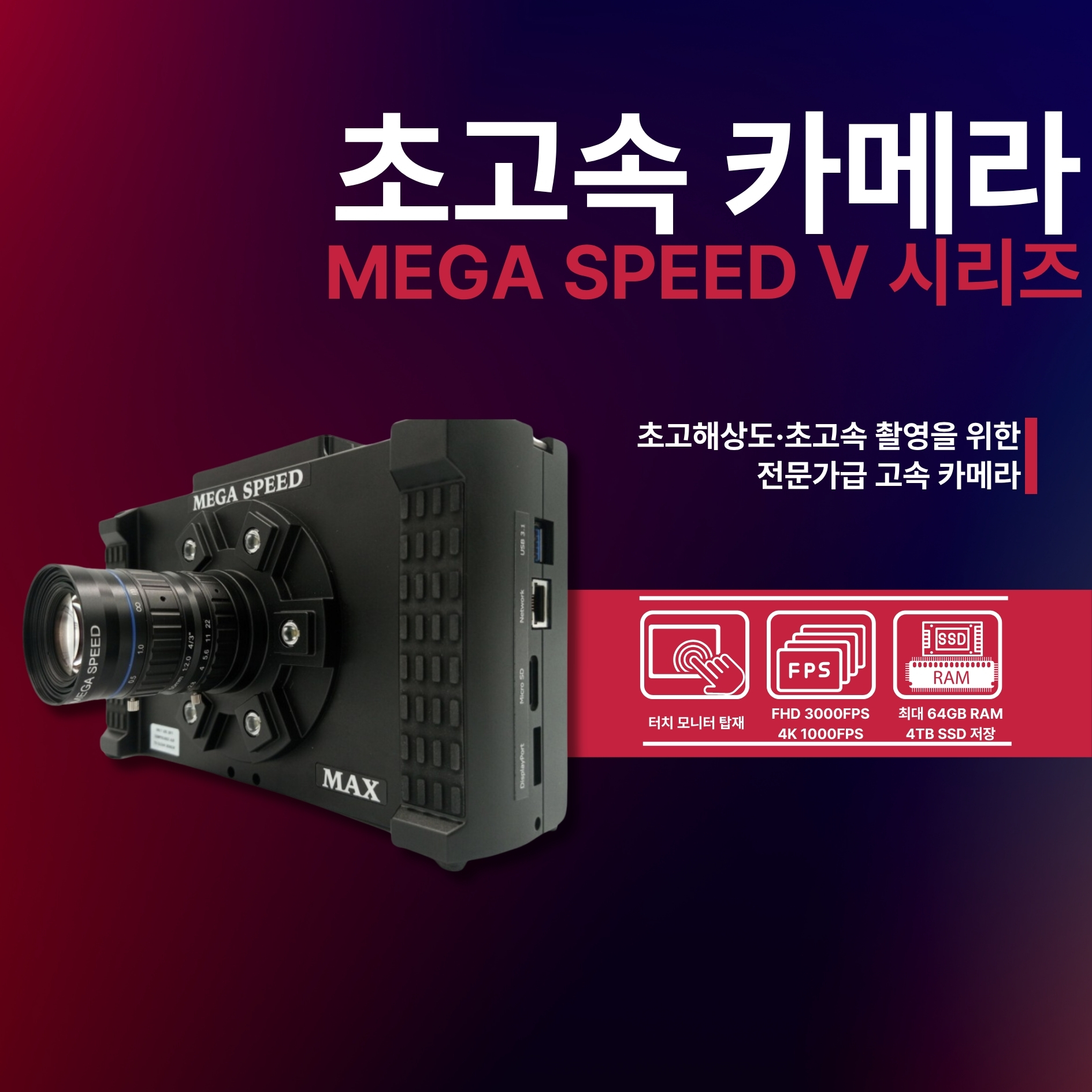 MEGA SPEED 초고속카메라 MAX V1, 1920 x 1080, 1000fps