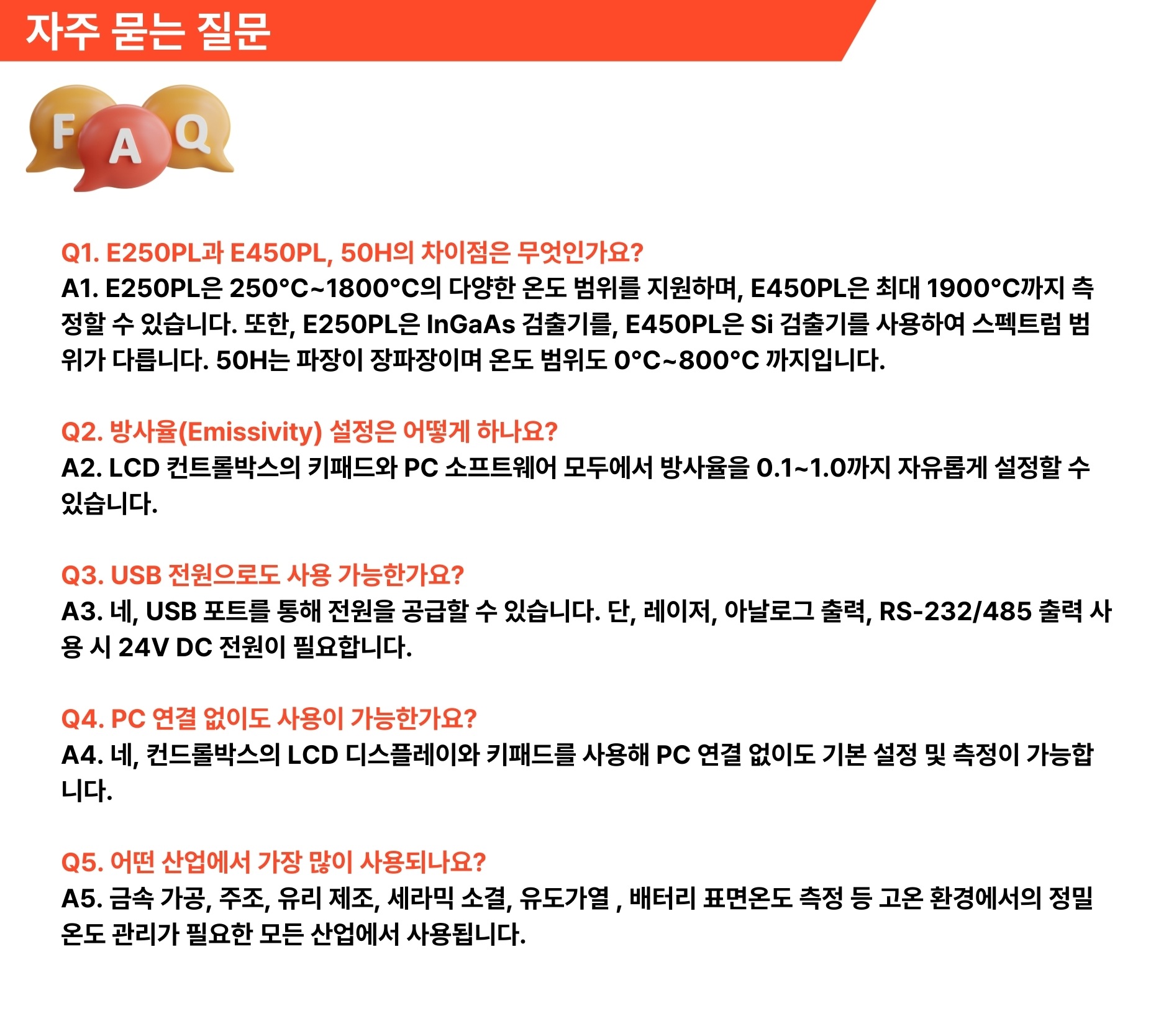 | 방사율 | 0.1~1.0(조정가능) | 0.1~1.0(조정가능) | 0.1~1.0(조정가능) | 0.75~1.25(기울기조정가능) |