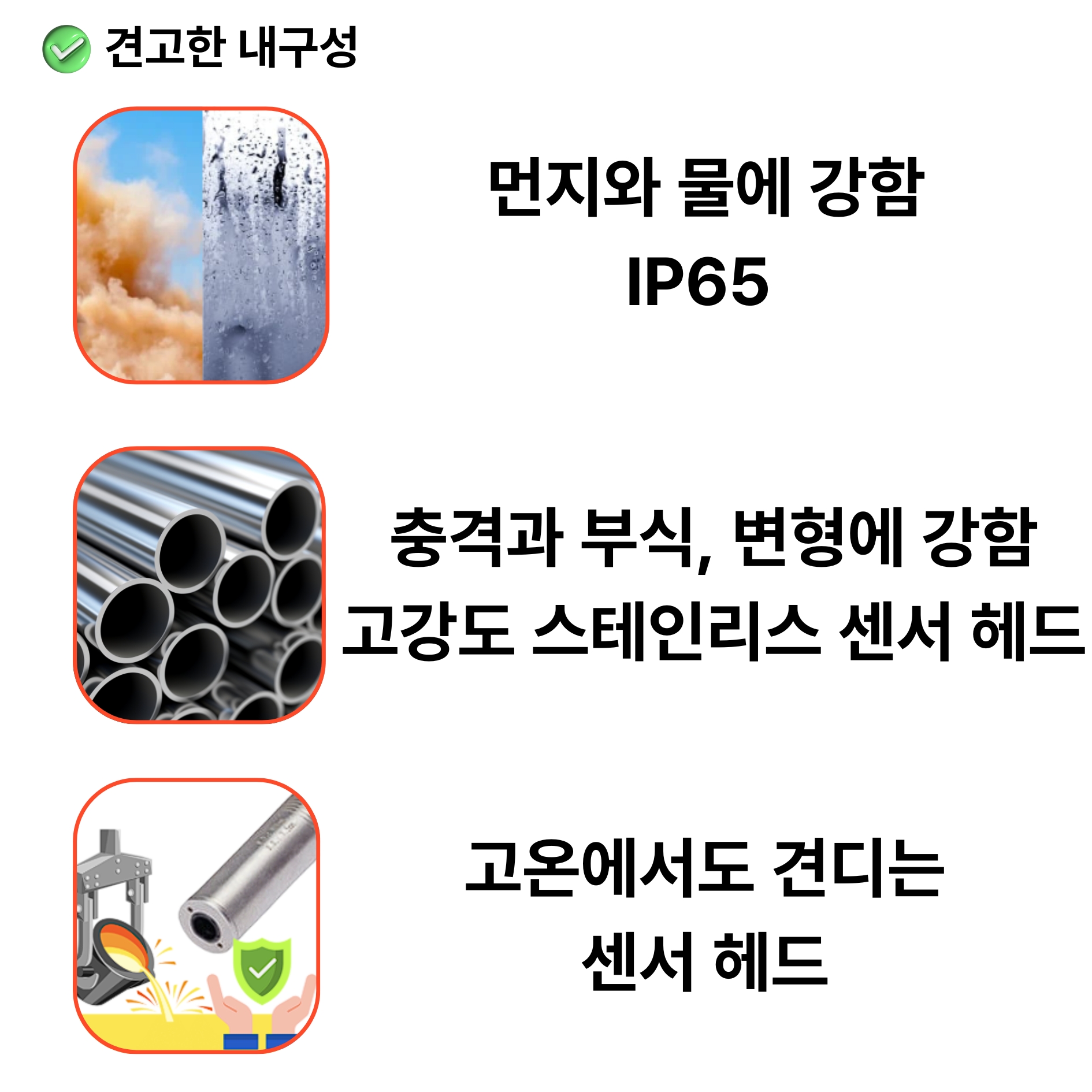 | 작동온도 범위 | 전자부및센서헤드 최대70°C(158°F) | 전자부및센서헤드 최대70°C(158°F) | 전자부및센서헤드 최대70°C(158°F) | 전자부및센서헤드 최대70°C(158°F) |