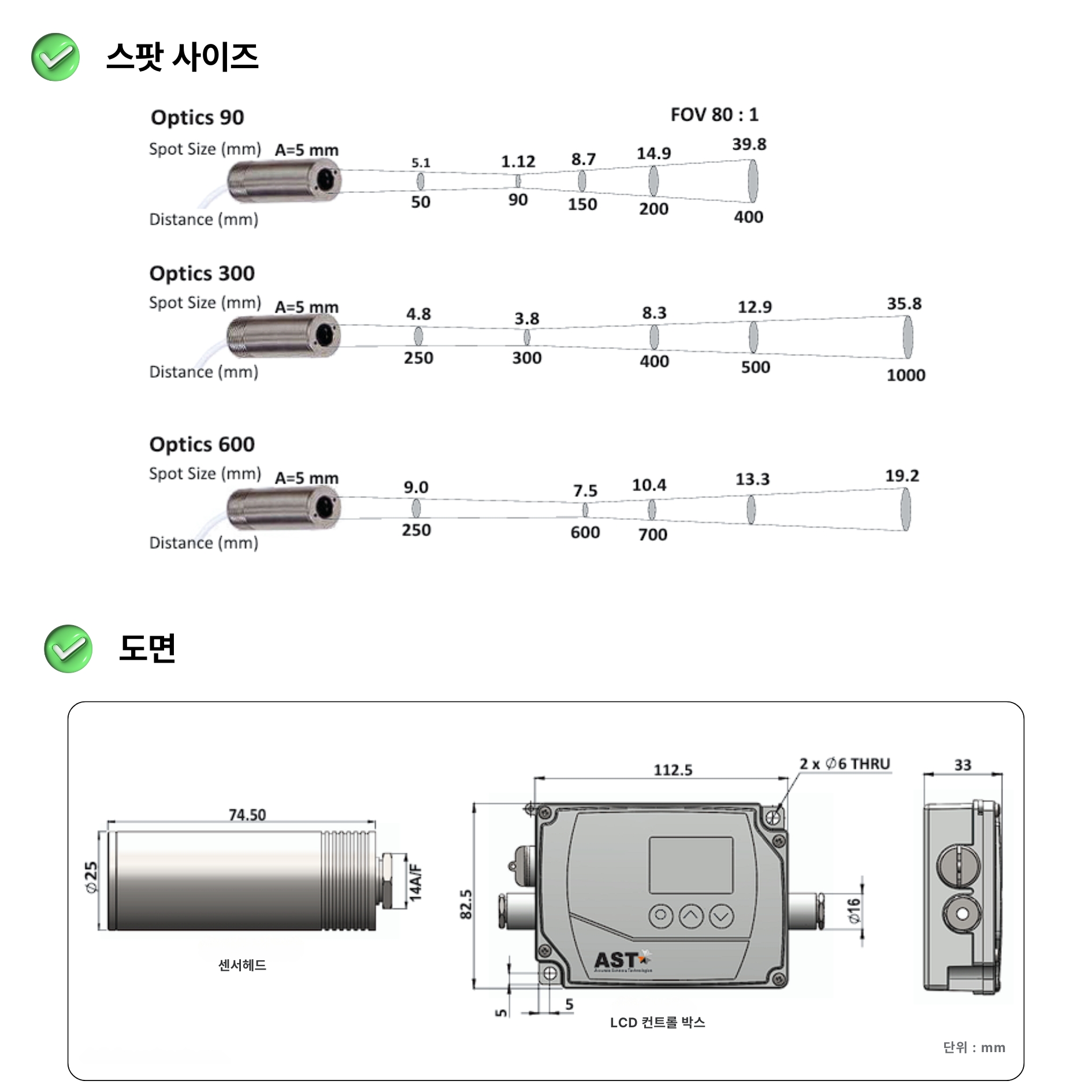 | 방사율 | 0.1~1.0(조정가능) | 0.1~1.0(조정가능) | 0.1~1.0(조정가능) | 0.75~1.25(기울기조정가능) |