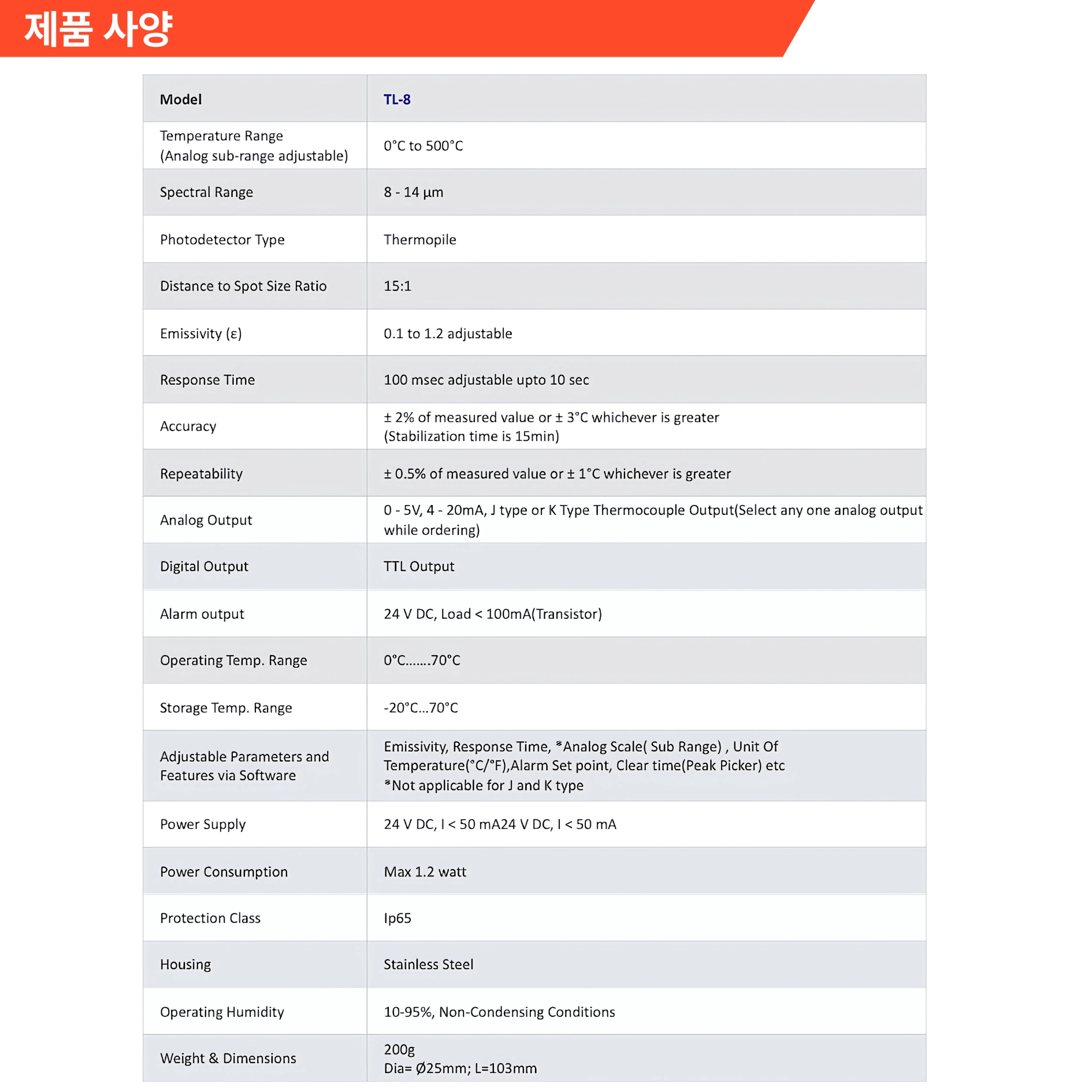 Pyrosense(AST) TL-8 PYROMETER, TL-8 파이로미터, 저온특화형온도계, 비접촉식온도계, 설치형적외선 온도계,