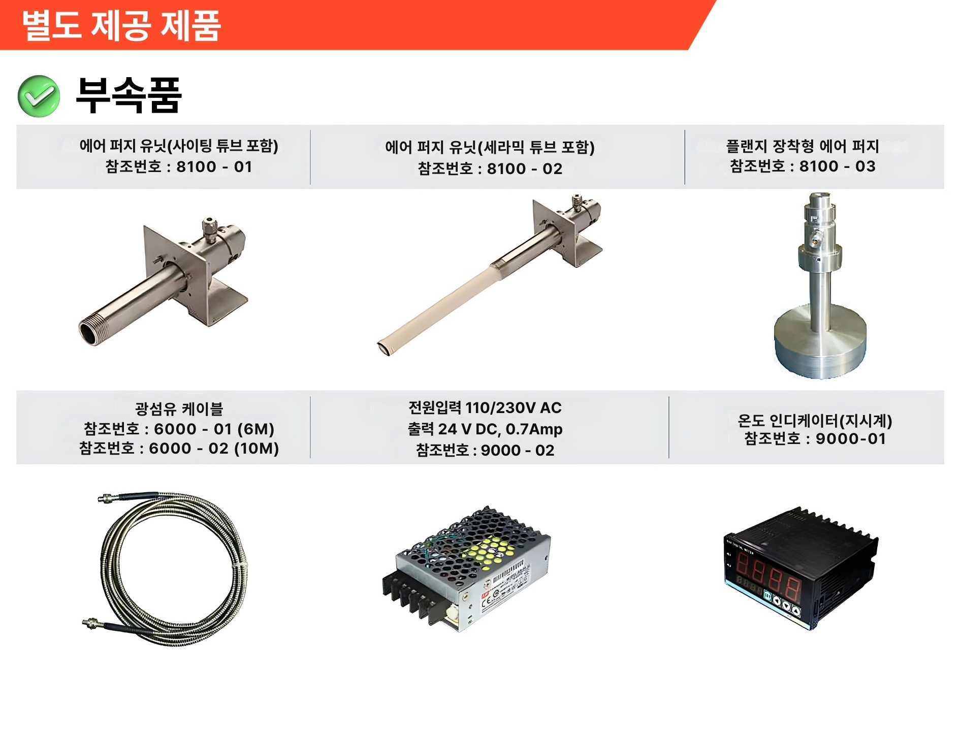 | 작동온도 범위 | 고온계:0~70°C(32~158°F), 광섬유헤드및케이블: 최대250°C(482°F) |