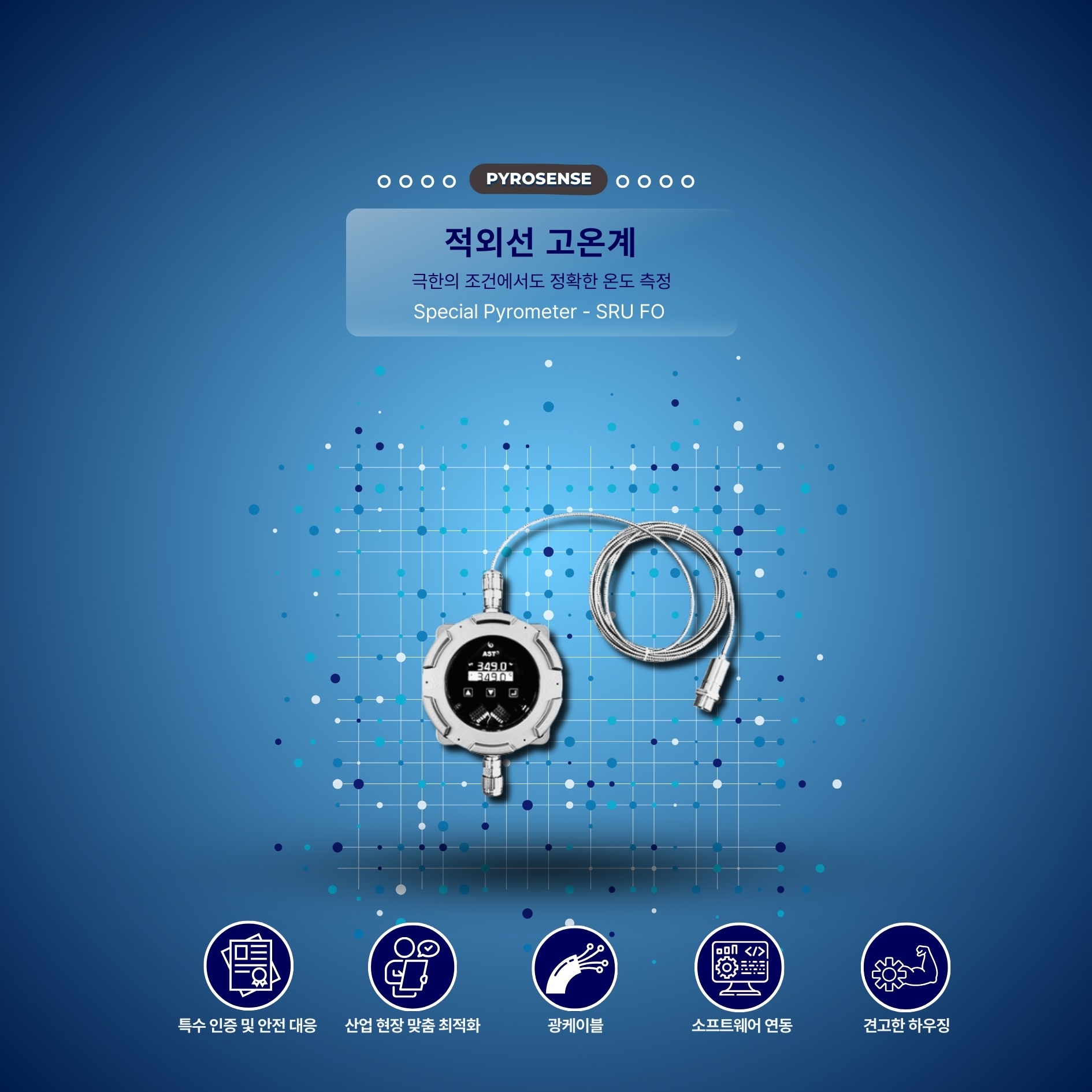 A1. SRU-FO는 ATEX 인증을 받은 방폭형 적외선 파이로미터로, 석유화학·정유·가스·제철 등 폭발 위험이 있는 고온 환경에서 안전하게 사용됩니다.