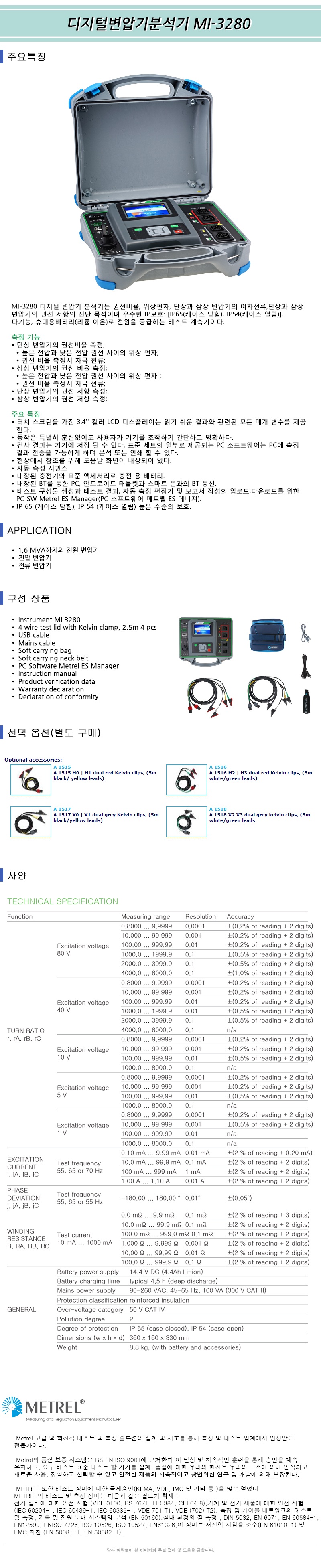 단상,삼상 변압기 권선비율측정, 위상편차, 여자전류, 권선저항 디지털변압기분석기 MI-3280
