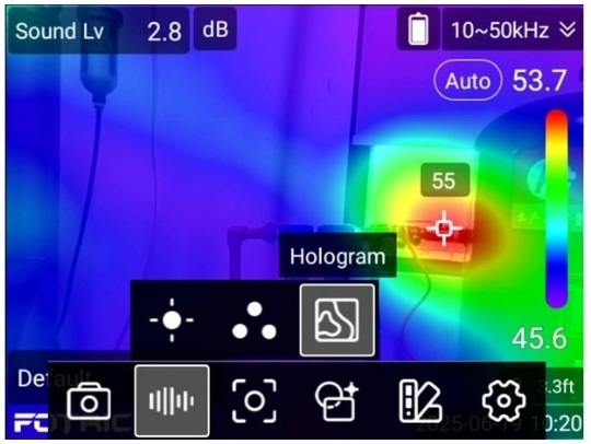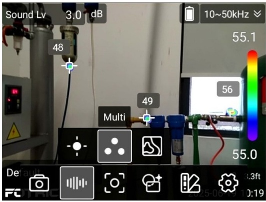 단일 소스, 다중 소스, 홀로그램 모드를 지원하여 현장 노이즈 복잡도와 점검 대상에 맞춰 적절한 표시 방식을 선택할 수 있습니다. 하나의 누설부터 복수 음원 환경까지 유연하게 대응합니다.