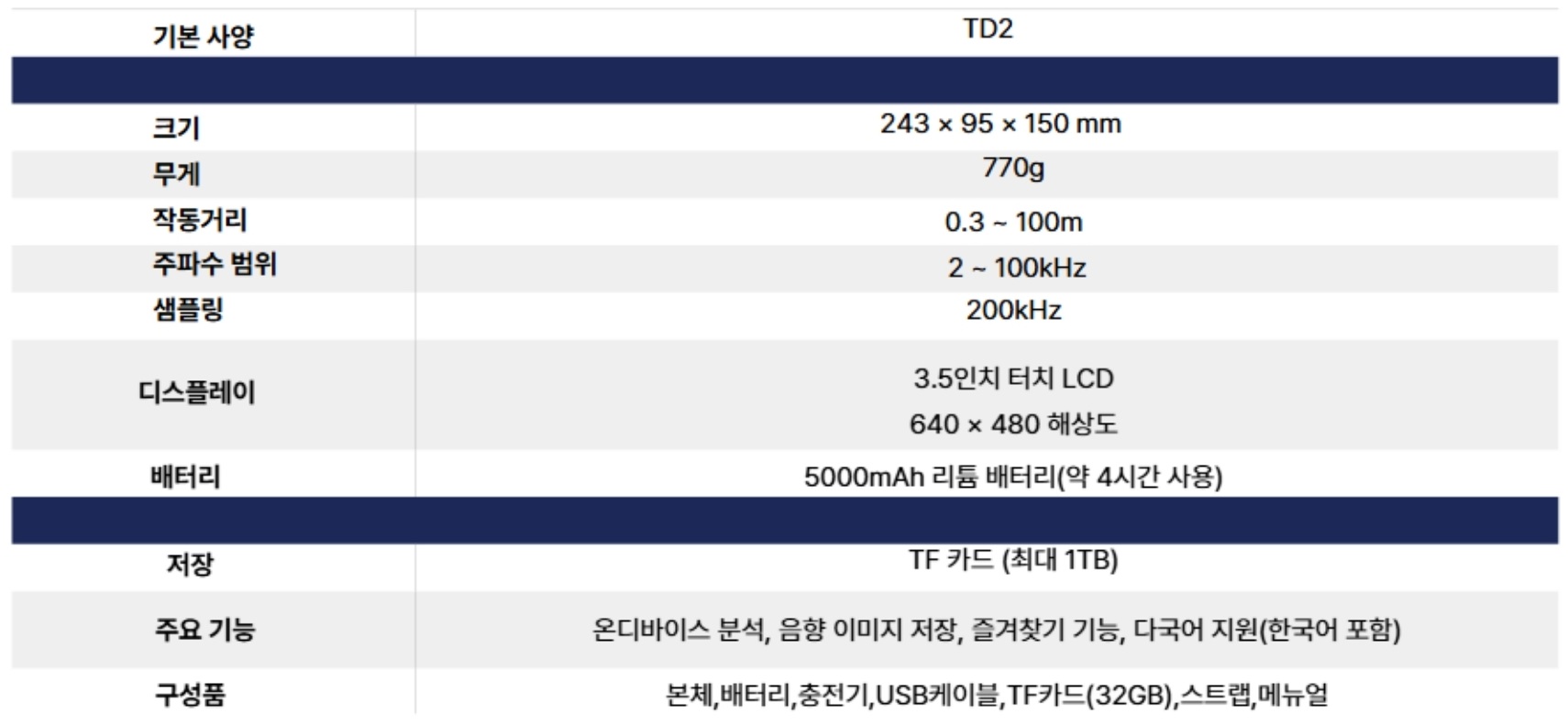 TD2 제품사양